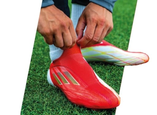 Kraft, Ballgefühl und Geschwindigkeit – wer sich hier verbessert, wird auf dem Platz zum Superhelden mit übermenschlichen Fähigkeiten. Nur knapp ein halber Kilo-meter wird dabei in 90 Minuten Spielzeit im vollen Sprint zurückgelegt. Bei einer durchschnittlichen Laufdistanz von zwölf Kilometern pro Spieler und Spiel in einer inter-nationalen Liga sind das ungefähr 4-5 % aller Laufwege. Schnelle Stürmer erreichen Maximalgeschwindigkeiten von über 35 km/h. Mit neuen Designs und Materialgemischen, Carbonelementen und neuen Stollenkonfigurationen hat sich die neueste Schuhgeneration hier deutlich weiterentwickelt.