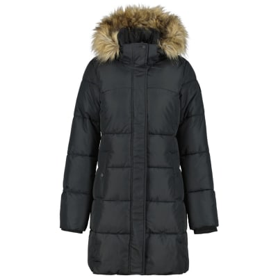 Icepeak Mantel für Damen. Abnehmbarer Kunstpelz am Innenkragen. Regulierbare und abnehmbare Kapuze. Elastische innere Ärmelbündchen. Zwei Vordertaschen. Zwei-Wege-Reißverschluss vorne. Windleiste mit Druckknöpfen. Schlitze am Saum. Logo-Label. PFC-freie Imprägnierung. Funktionalität und Komfort wurde besondere Beachtung beim Design-Prozess dieses A.W.S. ACTIVE-Produkts geschenkt, weswegen es für intensive wie auch für entspannte Aktivitäten geeignet ist. Die Wattierung besteht aus Daunenimitat, das eine exzellente Wärmeisolierung im Verhältnis zu seinem geringen Gewicht bietet. Die Gewebeoberfläche ist wasserabweisend imprägniert. Das winddichte Material bietet optimalen Windschutz und Wärme. Warm gefüttert.